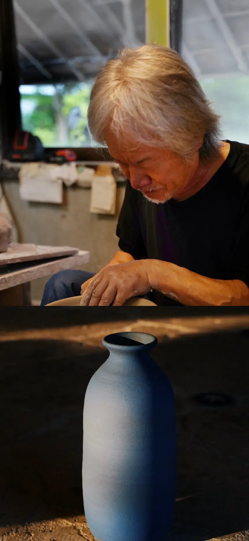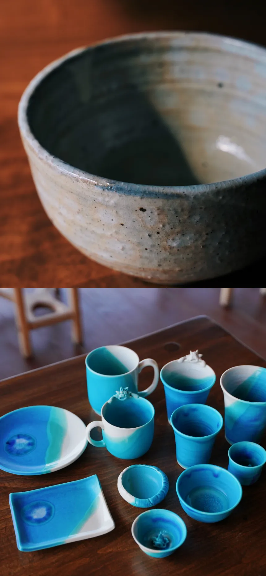 沖縄県・恩納村の大自然に囲まれた地で作陶する「青風窯」主宰、玉田彰。海や風、光の移ろいを土に映し、使う人の心にやさしく寄り添う器を生み出します。釉薬や形の細部にまで沖縄の風土を感じさせ、暮らしに穏やかな時間をもたらす作品づくりを続けています。