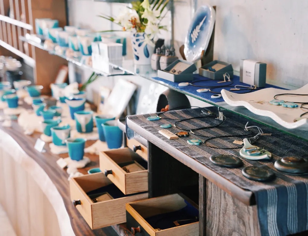 透き通るような青は、光と風、そして海のゆらぎをそのまま映した色。見る角度や光の加減で表情を変えるその青は、まさに沖縄らしさを象徴する彩りです。