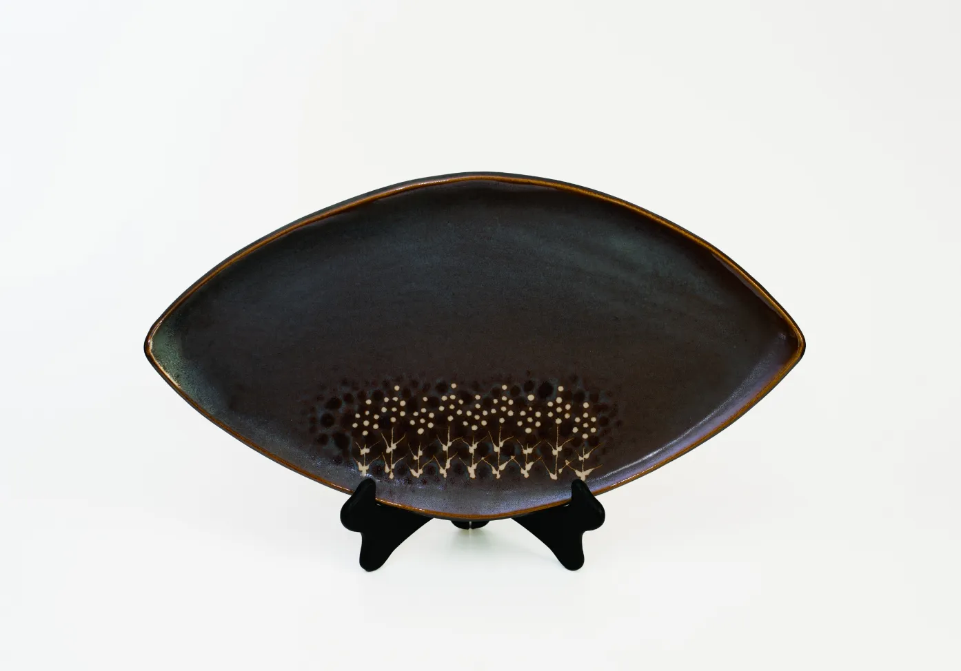 琉球の雅と現代の華を纏った特別な器、「赤絵唐草紋」を主題にしたディナー用ショープレートは、緻密な絵付けと唐草の流麗な曲線が静かな舞を紡ぎ出します。また、やわらかな丸みが印象的なポットは、穏やかな時間を誘うかのように卓上に温もりを添えます。