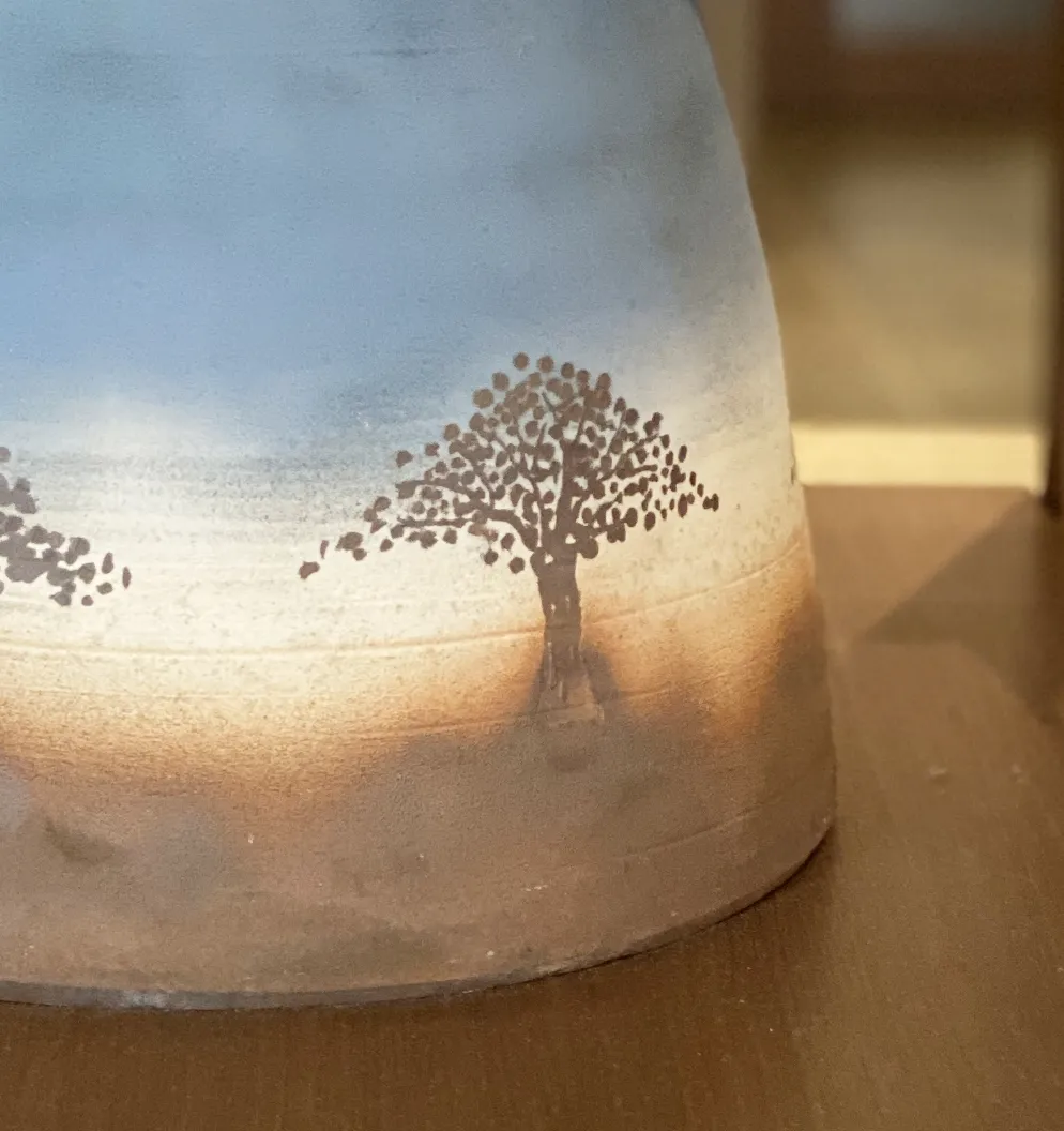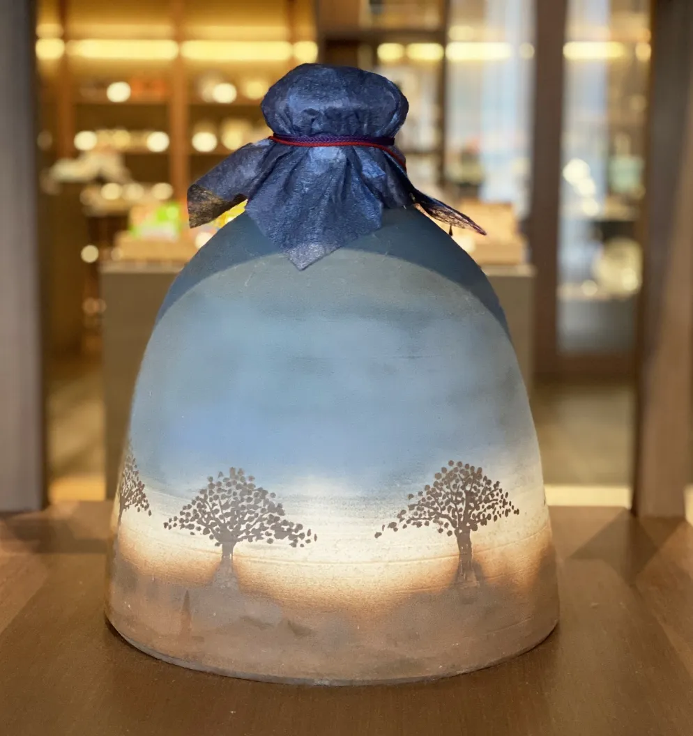 ハイアット リージェンシー 瀬良垣のオープニングを記念して制作。沖縄の土と釉薬が織りなす彩りと、生命の樹を象った紋様が調和し、自然の息吹と祈りを宿す「彩土樹紋酒壺」。